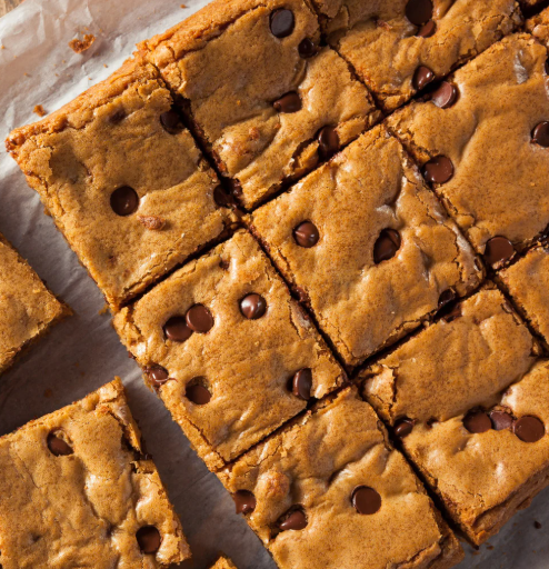 Enjoy the golden goodness of our Blondies, made with our GF Flour Mix for a perfectly chewy texture. Naturally sweetened with coconut sugar and Monk fruit, loaded with rich, dairy free chocolate chips. This treat blends the flavor of a classic chocolate chip cookie with the soft, brownie style shape.